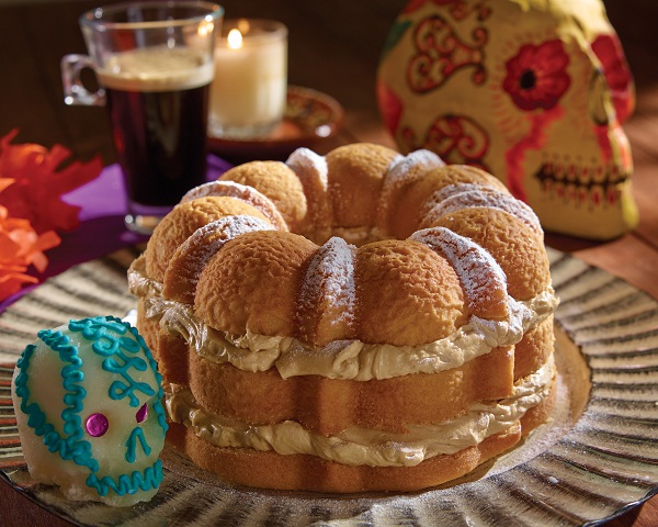 - Corta la rosca en tres partes; rellena la base con la mitad de la mezcla anterior y coloca encima el centro de la rosca. Sobre ésta, distribuye la crema restante y cubre con la tapa de la rosca; decora con azúcar glass y ofrece.